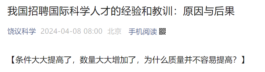 我国招聘国际科学人才的经验和教训:原因与后果