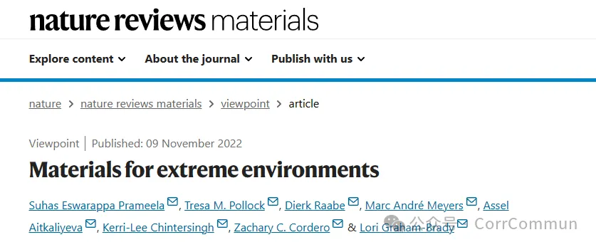 当今世界正面临着气候变化等一系列极端环境挑战,这些极端环境对材料的服役性能提出了更高的要求。极端环境条件下的材料性能研究成为了材料领域研究关注和探索的重点之一。从事不同类型极端环境材料研究的顶尖专家在Nature Reviews Materials期刊发表了评述文章《Materials for extreme environments》,其中来自德国马克斯·普朗克研究所的Dierk Raabe院士针对极端腐蚀和氢环境材料研究领域的最新进展、机遇和瓶颈问题进行了评述。