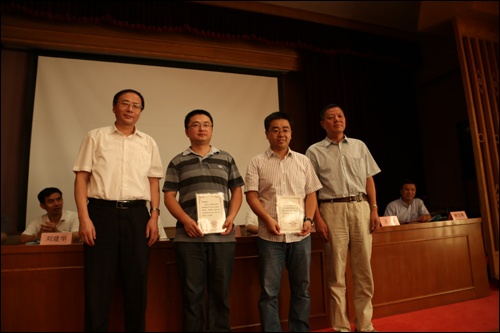 北京市科协副主席田文同志为吴俊升副教授和刘智勇副教授颁奖