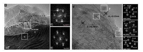 图1 金属Cu和Ni钝化膜高分辨电子显微分析
