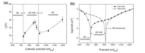 图2 阴极电位下应力腐蚀敏感性电化学极化过程的关系