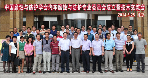 中国腐蚀与防护学会汽车腐蚀与防护专业委员会成立大会于2014年6月25日在北京科技大学举办。来自奇瑞汽车、长城汽车、长安汽车、北汽福田、华晨汽车、北京汽车、江陵汽车、
