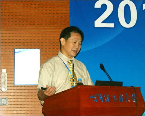图1:罗俊雄在做题为“海生物附着对碳钢腐蚀之电化学研究”的报告