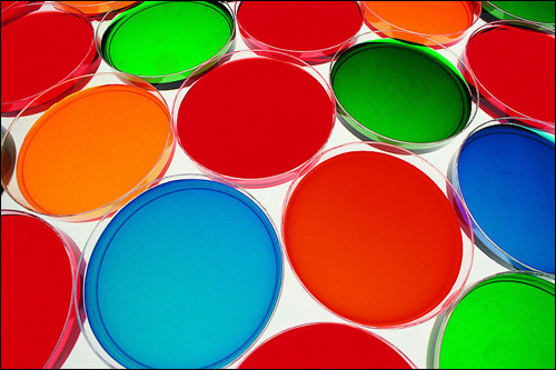 颜料是一类有色(含白色)的微细颗粒状物质,不溶于分散介质中,是以其“颗粒”展现其颜色(简称“颜色发色”)为特征的一类无机或有机物质。颜料的粒度范围通常介于30nm-100μm之间。颜料的颜色、遮盖性、着色力及其他特征与其在介质中的分散状态(颜料颗粒在介质中的存在状态)有极大的相关关系。颜料中的有机颜料与染料有很多相似之处,其最根本的区别在于,染料是可溶解在分散介质中,以其“分子基因”展现其颜色(简称“分子发色”)的。