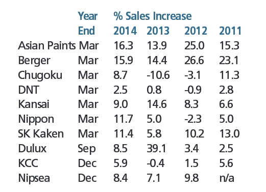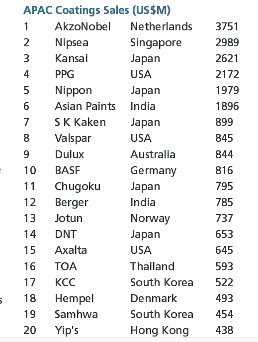 附:“2014年亚太地区涂料企业25强”榜单分析报告