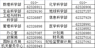 面上项目、重点项目、国家重大科研仪器研制项目等:010-62327230,010-62325557,010-62327008
