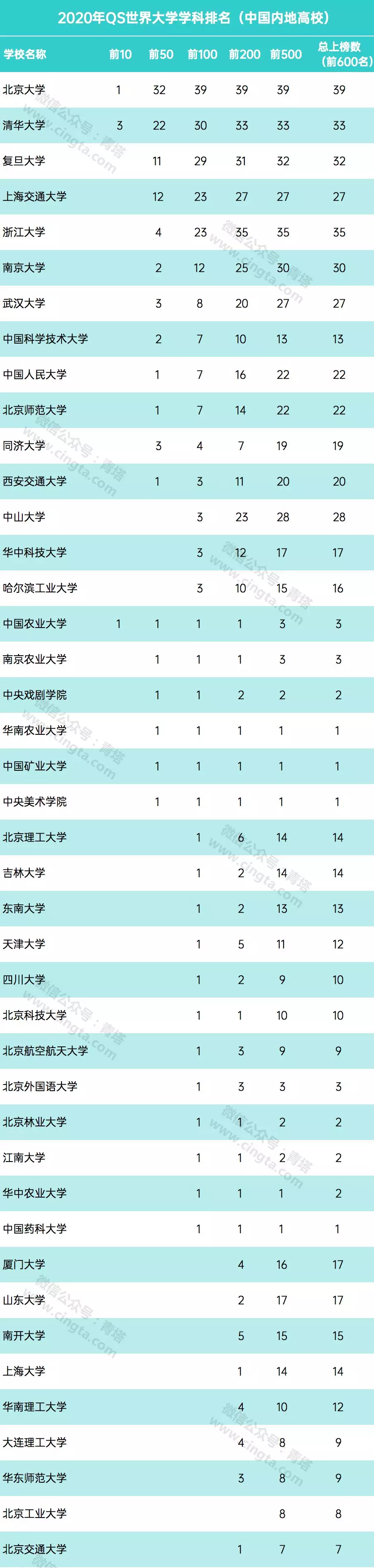 更多数据请见: 青塔 2020年QS世界大学学科排名出炉,中国高校表现亮眼!