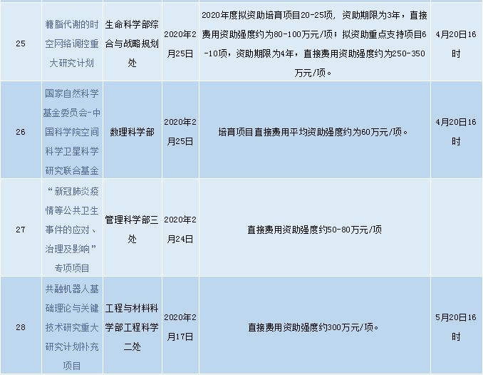 完整目录请下载: 汇总 _ 2020年国家自然科学基金已启动项目指南一览.pdf