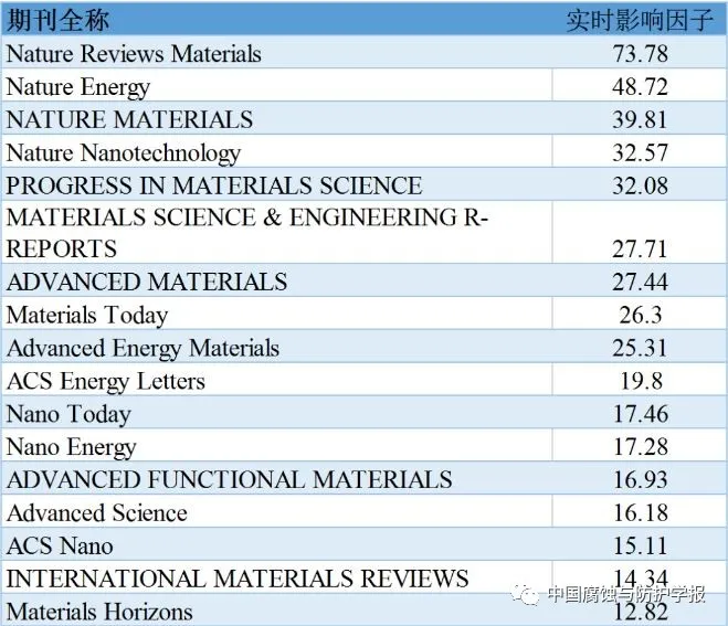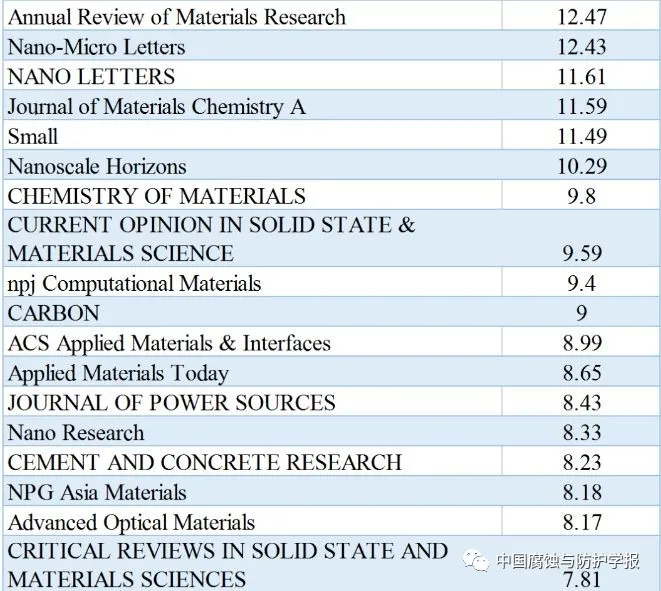 材料学科主要期刊