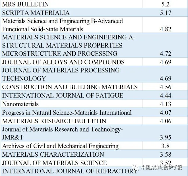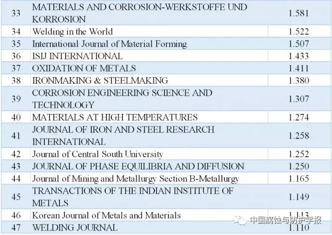 冶金学科主要期刊