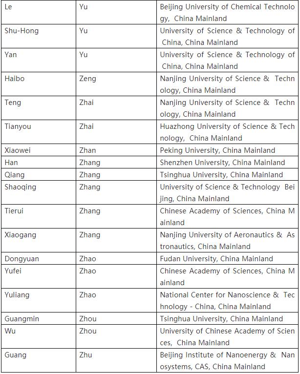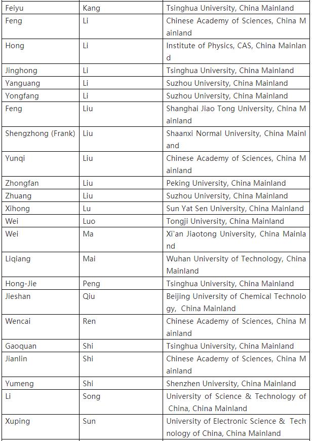 其中材料科学领域,中国内地共有83人入选,其中中国科学学院20人,清华大学8人,苏州大学6人,位居前三。下面是前三高校中的老师。