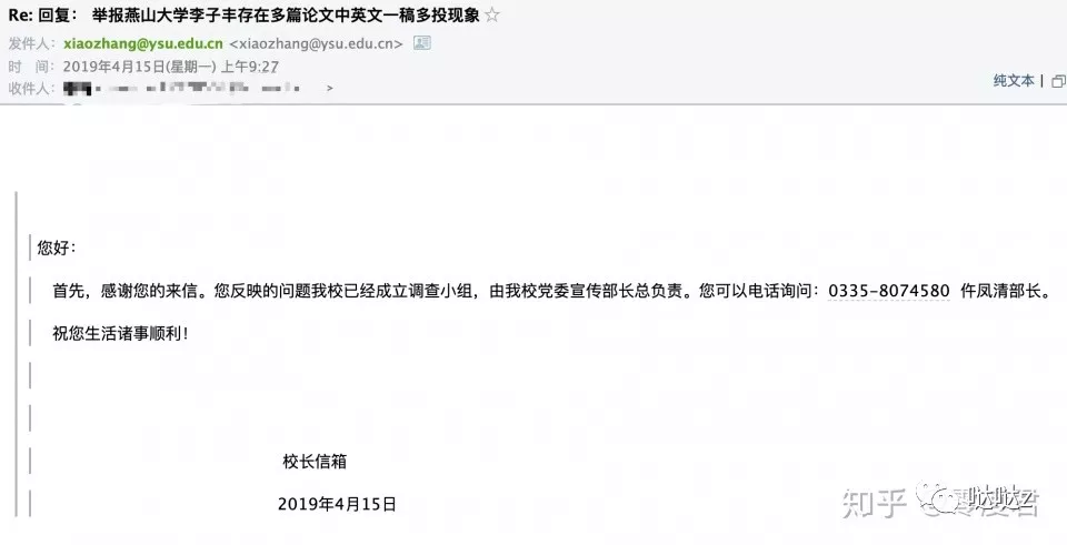3月20日,燕山大学官方回信表示高度重视并已经提交到学术道德委员会