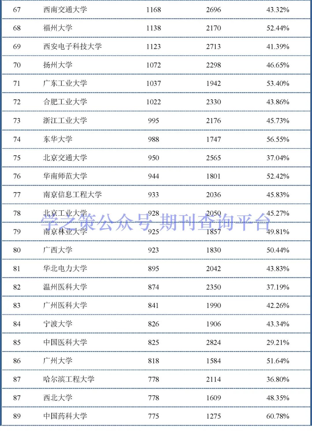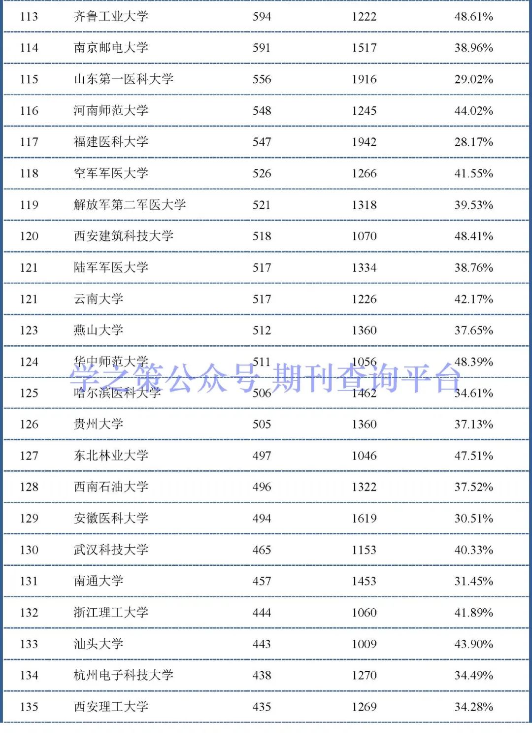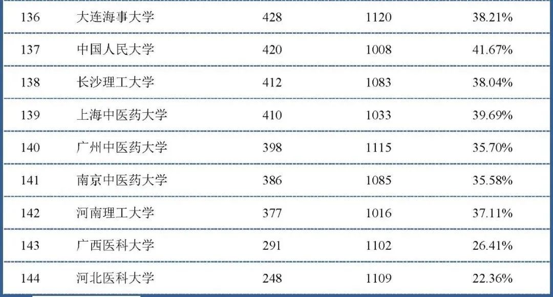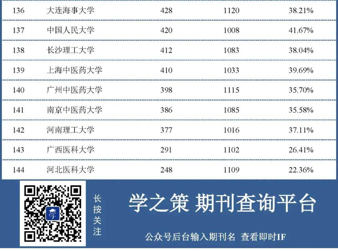下面我们对总发文量在1000以上的高校进行了排名,共计有144所高校上榜。