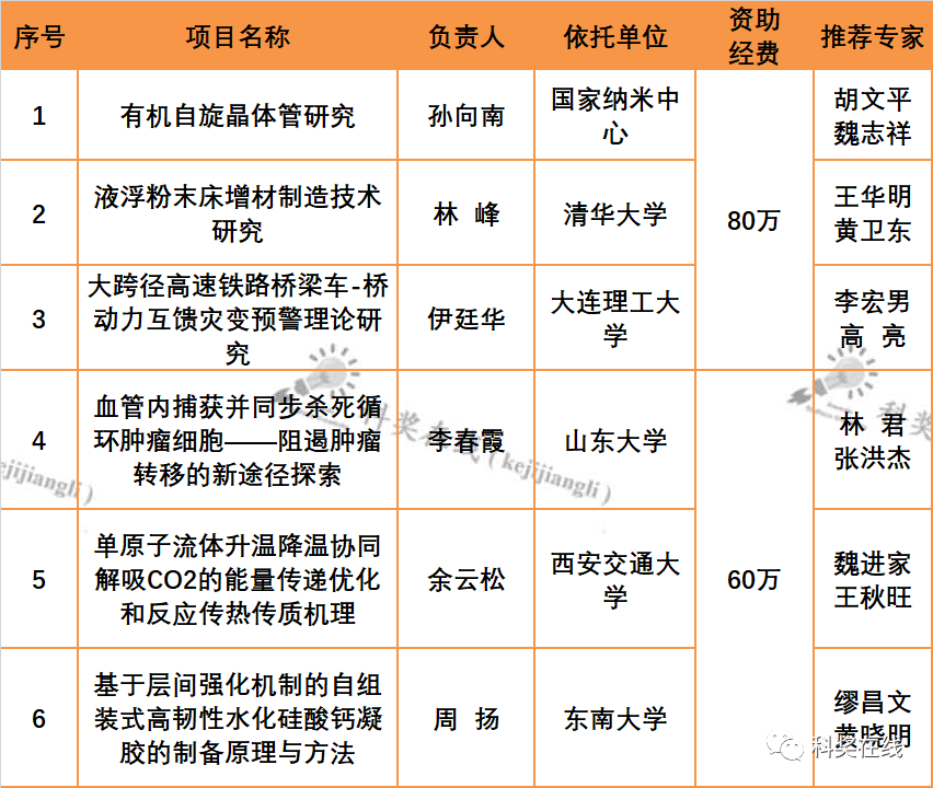 7、工程与材料科学部:专家推荐类(6项,420万)