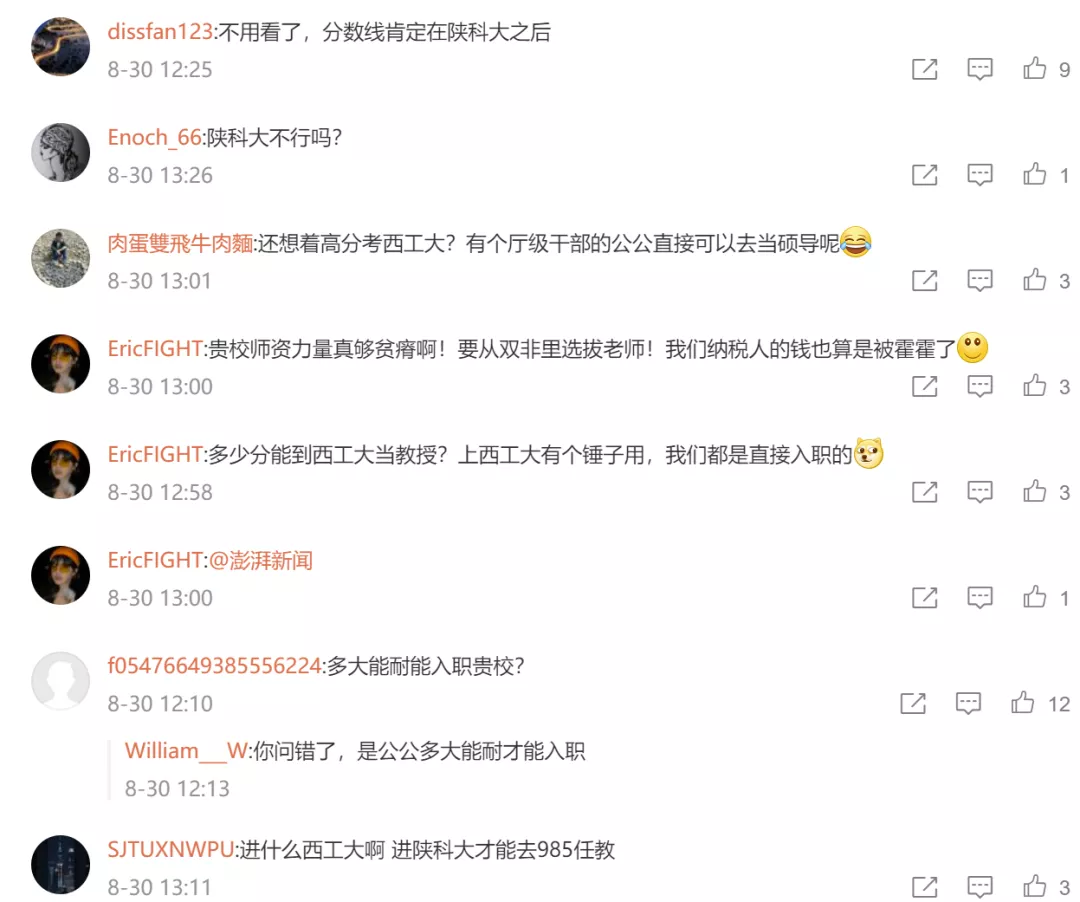 网友还指出,和她一起进入西北工业大学的人工基本至少是211起步,她是个例外。