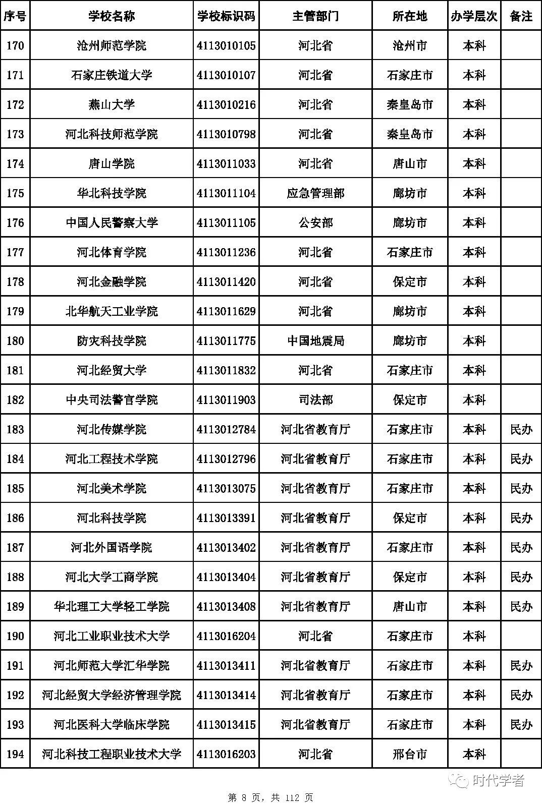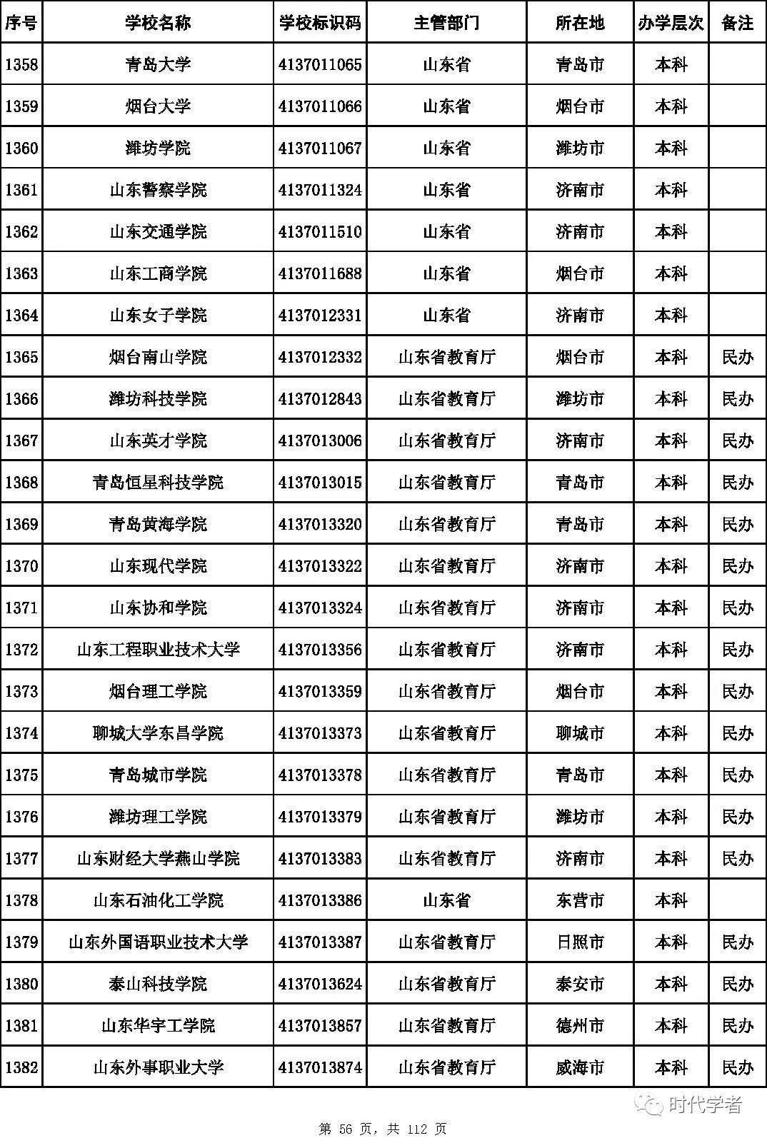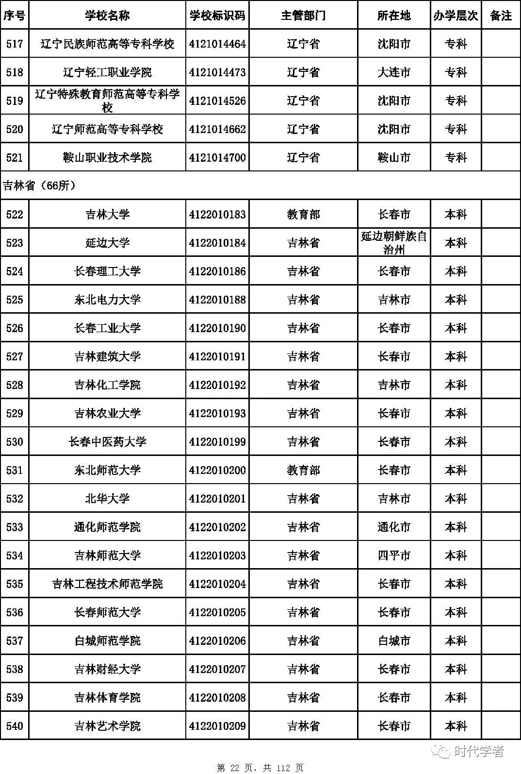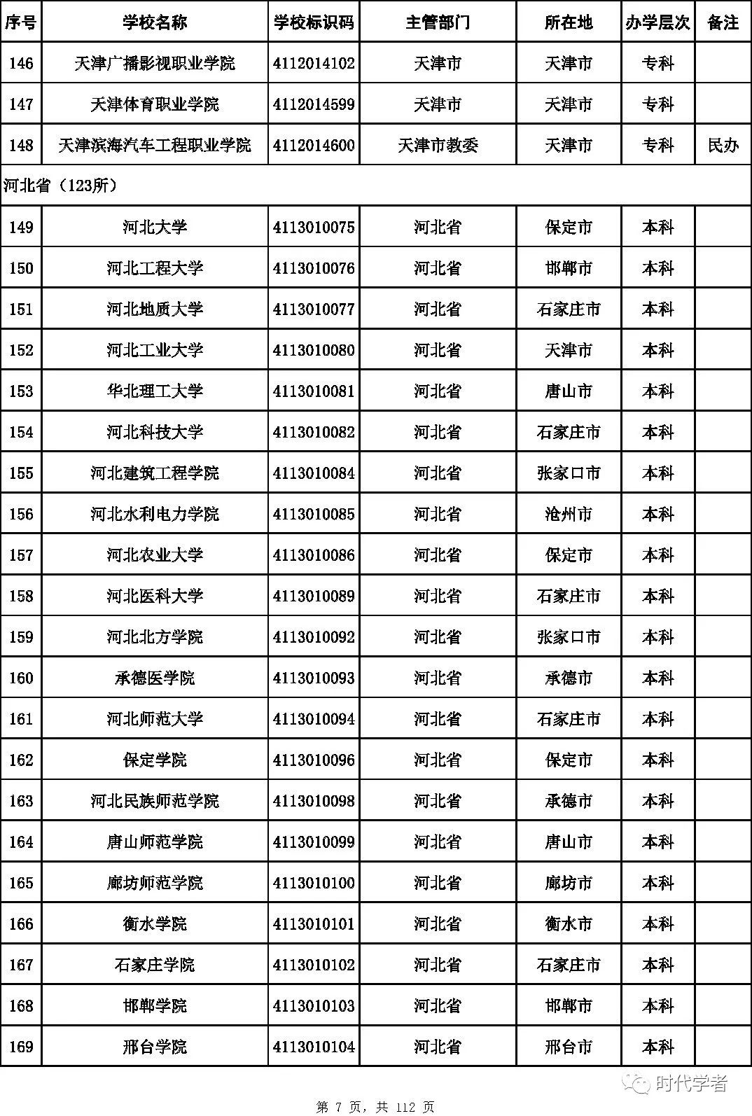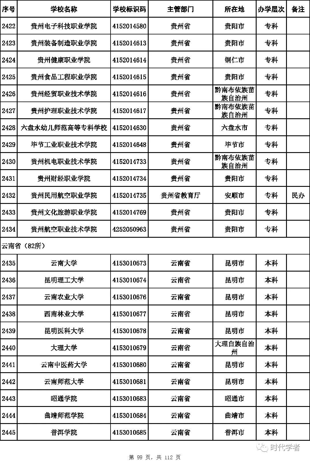 截至2021年9月30日,全国高等学校共计3012所,其中:普通高等学校2756所(本科1270所、专科1486所),成人高等学校256所。本名单未包含台湾省、香港特别行政区和澳门特别行政区高等学校。