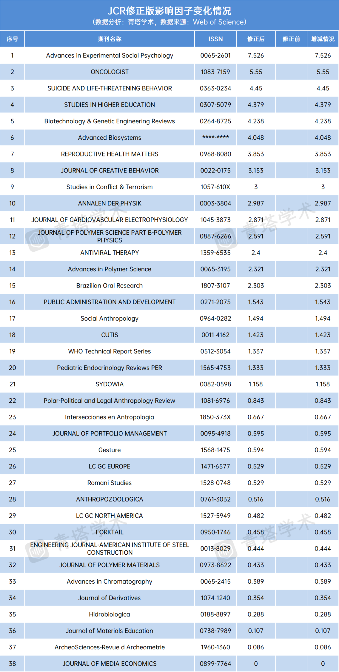 重要变动!90本SCI期刊被踢,289本期刊影响因子重新修正!