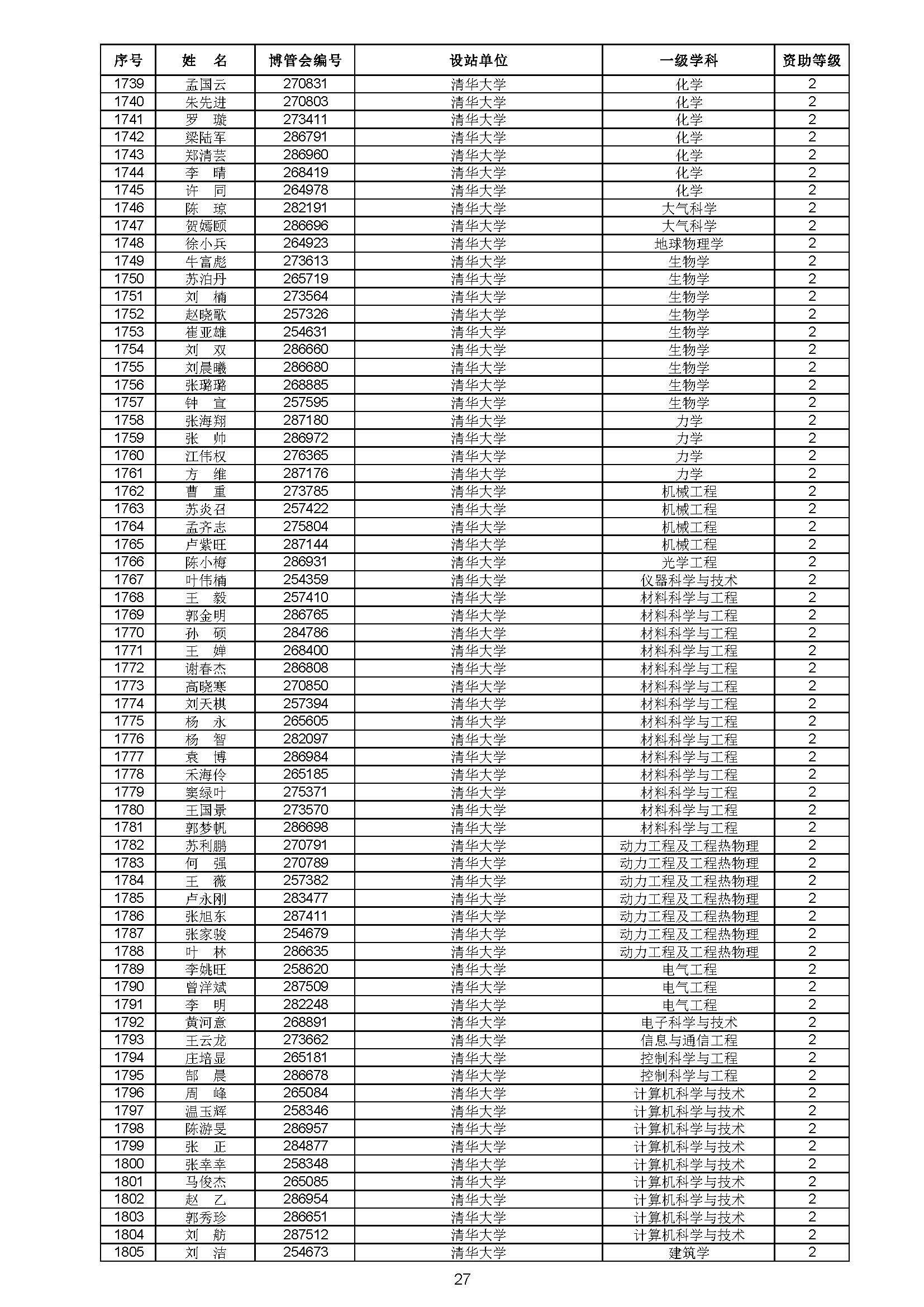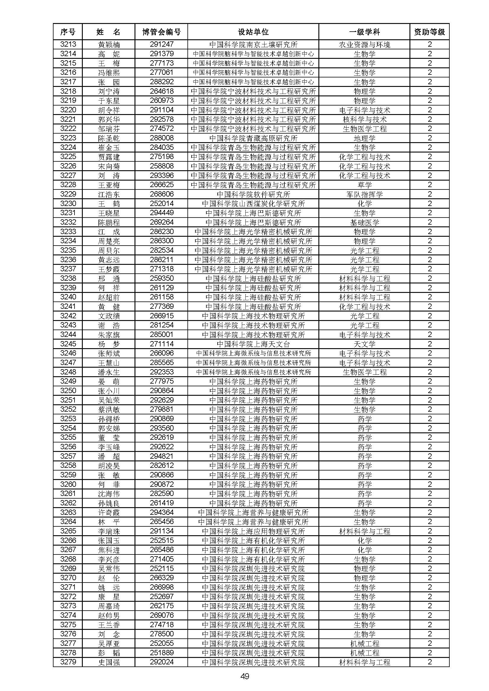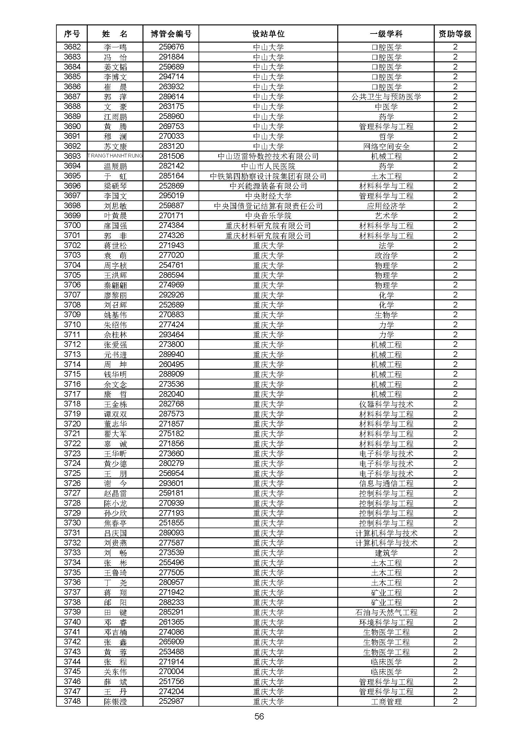 中国博士后科学基金第70批面上资助拟资助人员名单公示