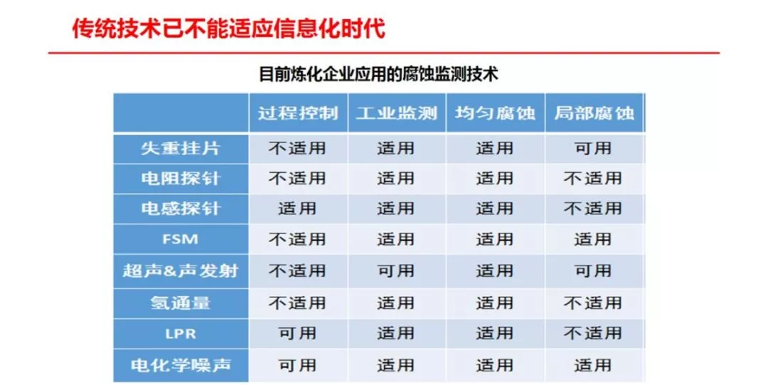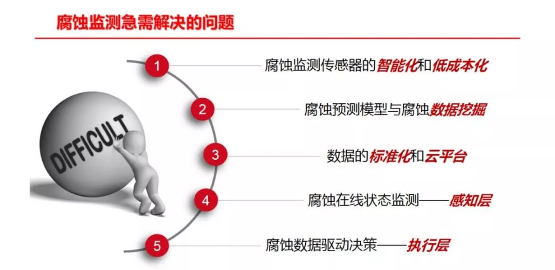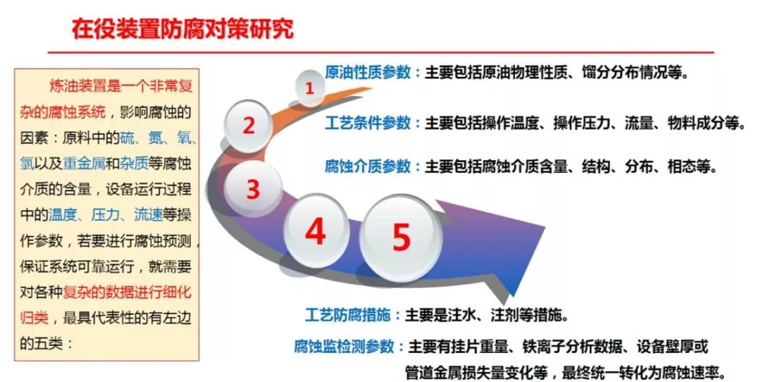 近年来,国内一些研究机构(如青岛安工院)开发了一套集在线、离线监检测数据于一体的为腐蚀分析提供便利的腐蚀数据管理系统,其次运用深度学习方法对炼化企业累积的海量数据进行深度分析,关键装置的工艺参数和水质分析数据进行学习训练,建立关键信息与其他监测之间的黑盒模型,达到根据工艺状态快速、准确的预测目的,为指导企业腐蚀防护工作奠定理论和技术基础。