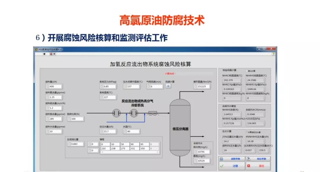 腐蚀预测模型避免了受成本和技术限制,生产中难以对腐蚀关键参量进行实时掌控的问题,及时的数据预测可为切实指导装置防腐工作提供技术支持。