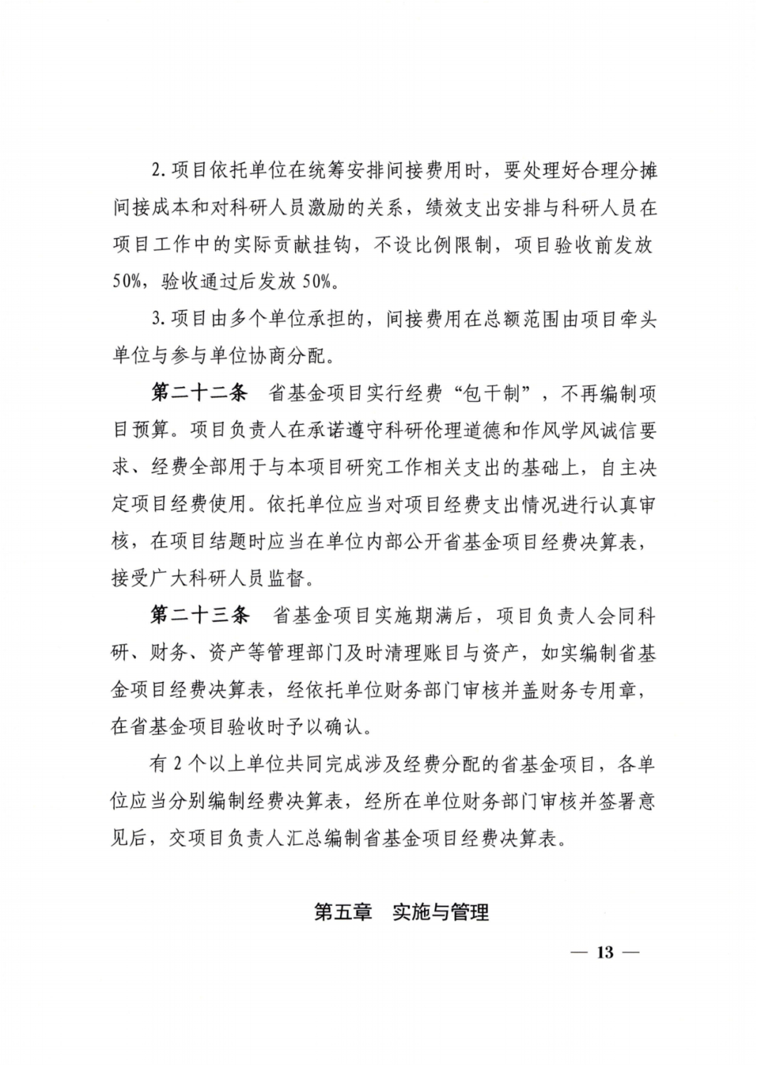 第二十一条项目完成目标任务按照规定程序确认后,结余资金留归项目依托单位使用。项目依托单位要将结余资金统筹安排用于科研活动直接支出,优先考虑原项目团队科研需求,并加强结余资金管理,健全结余资金盘活机制,制定结余资金使用计划,加快资金使用进度。未通过验收和整改后未结题的项目,结余资金按原渠道收回。