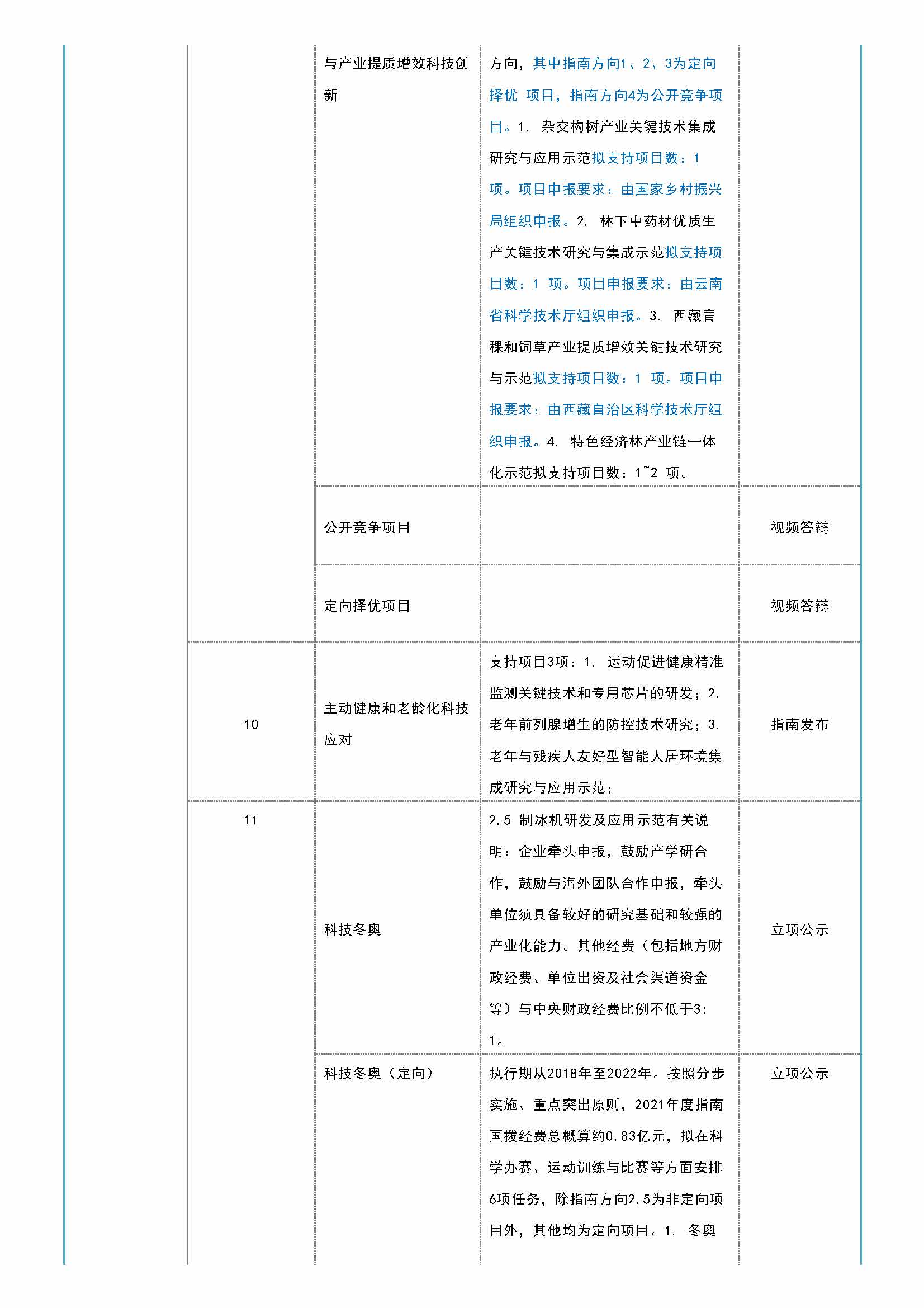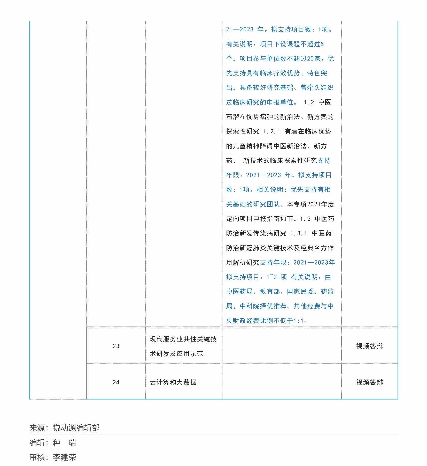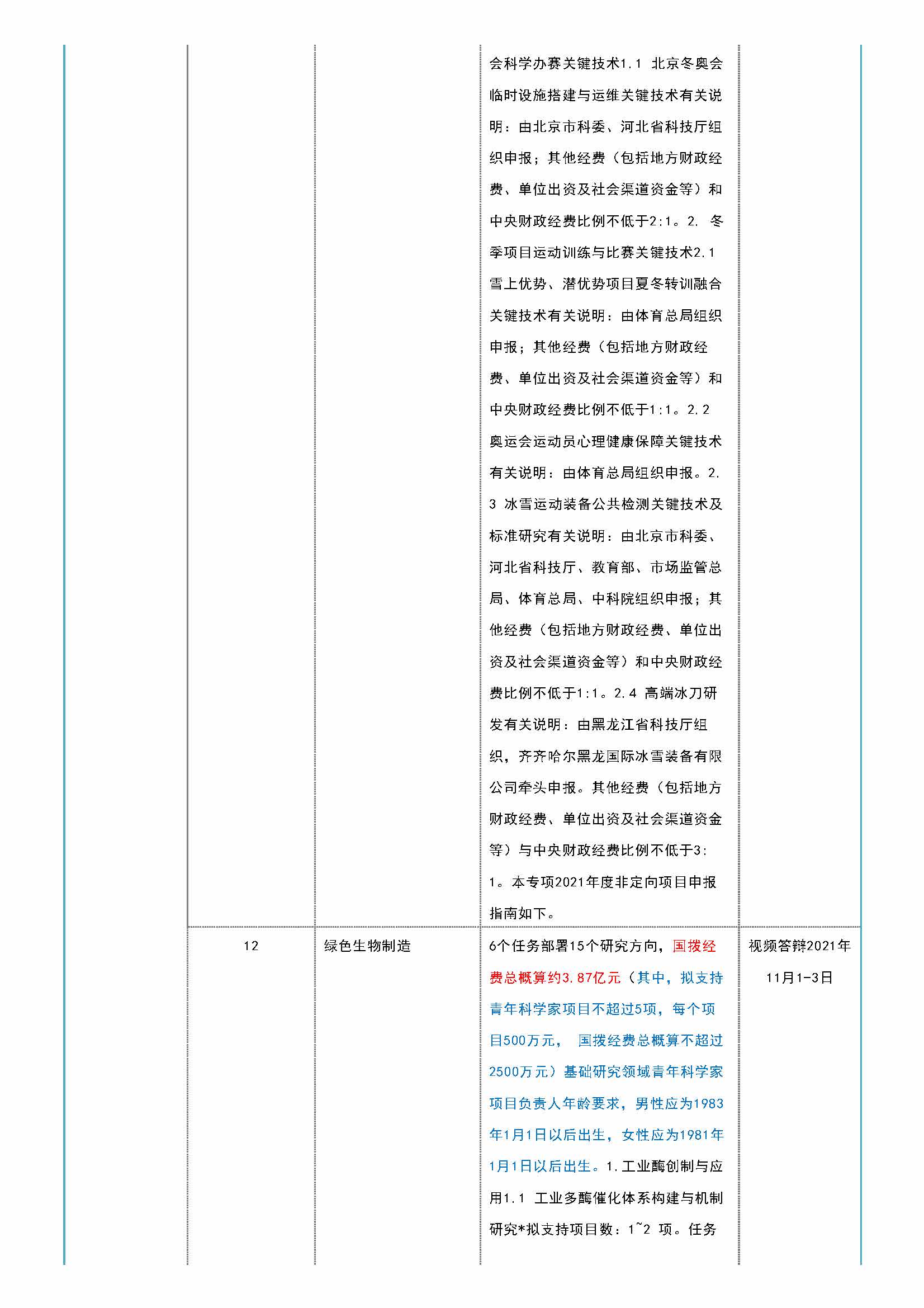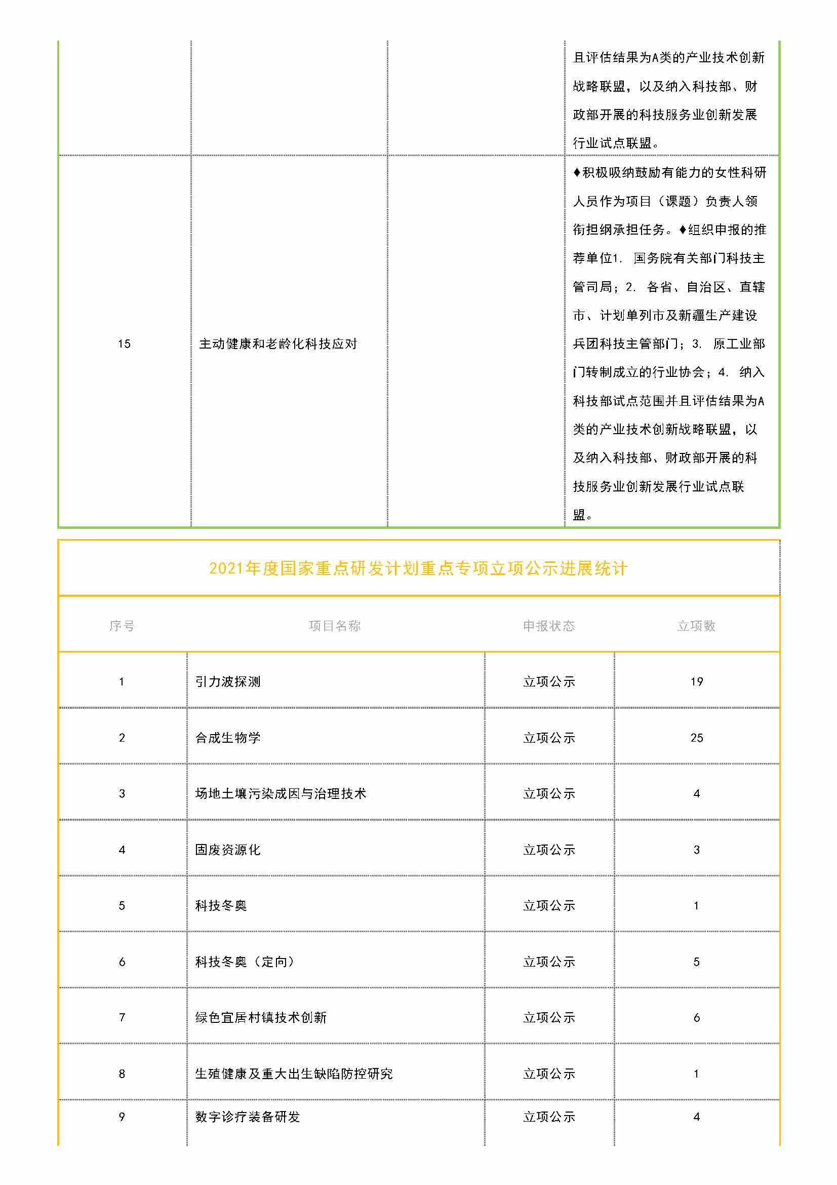此外,2021年正值两个五年计划的过渡期。因此,既有原有计划的后续部署,又有“十四五”重点专项的启动实施。据动源君不完全统计,已发布实施的国家重点研发计划重点专项2021年项目指南24个。其中,引力波探测、合成生物学、场地土壤污染成因与治理技术、固废资源化、生殖健康及重大出生缺陷防控研究、科技冬奥、科技冬奥(定向)、主动健康和老龄化科技应对、数字诊疗装备研发、绿色生物制造、绿色宜居村镇技术创新、公共安全风险防控与应急技术装备(司法专题任务)(定向)11个重点专项,共99个项目进行了公示。