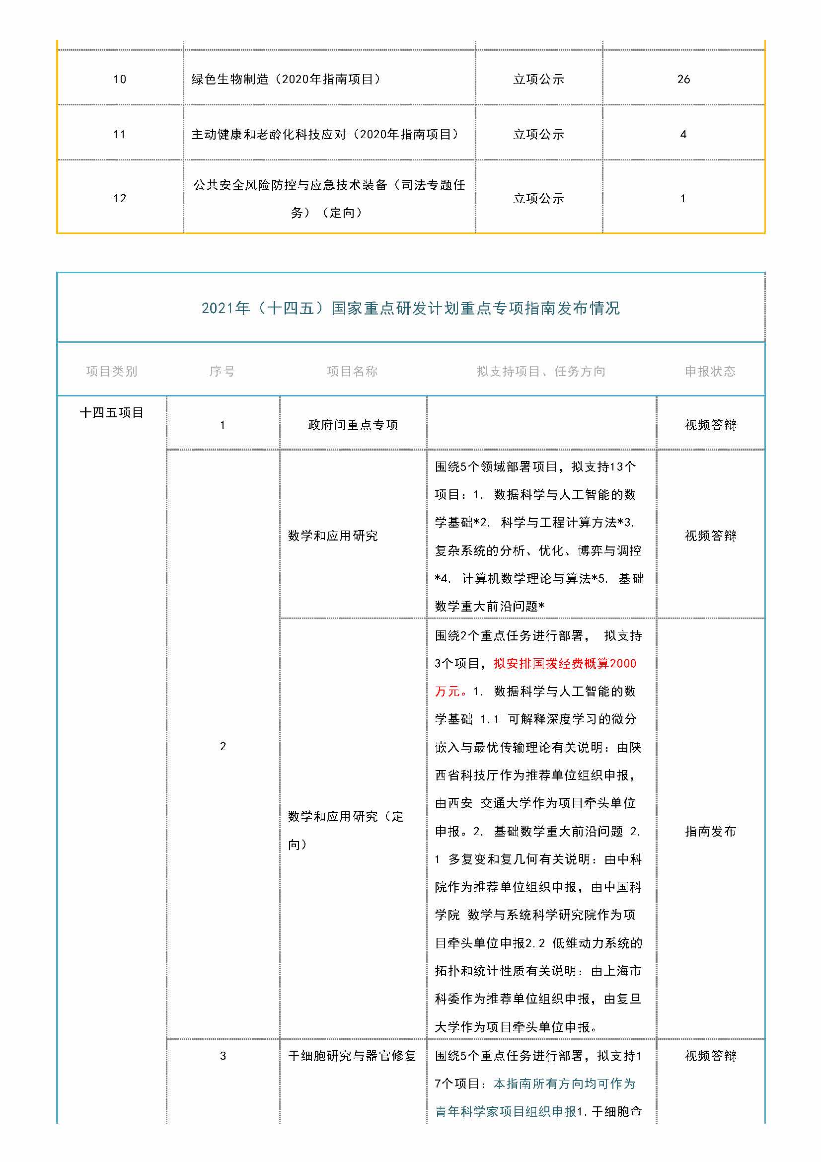 其中,“数学和应用研究”等52个重点专项已发布指南。区块链等72个重点专项进入视频答辩阶段。主要经济作物优质高产与产业提质增效科技创新等5个重点专项进入正式申报阶段。