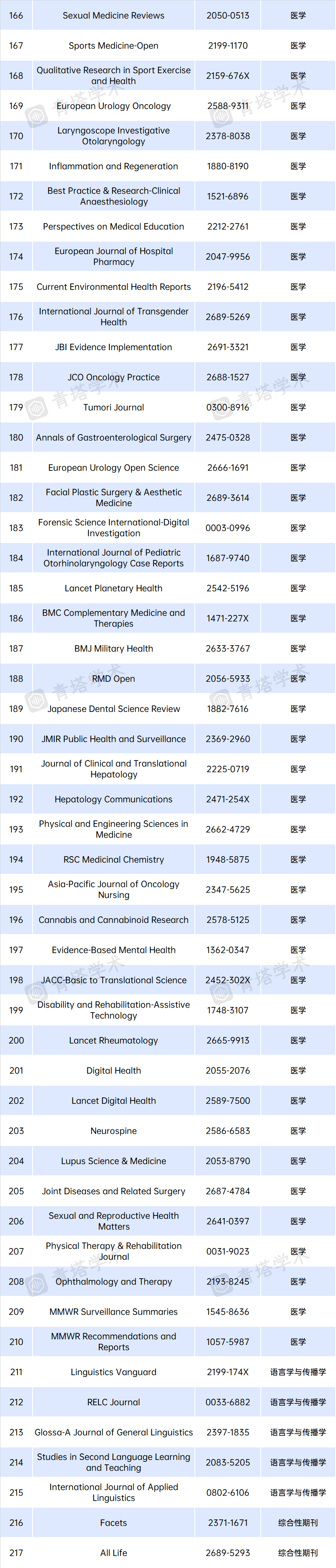 2021年期刊分区表,根据期刊定位和论文的引用关系,将新增的217本SCIE/SSCI期刊和113本ESCI中国期刊,划入到对应的大类学科。
