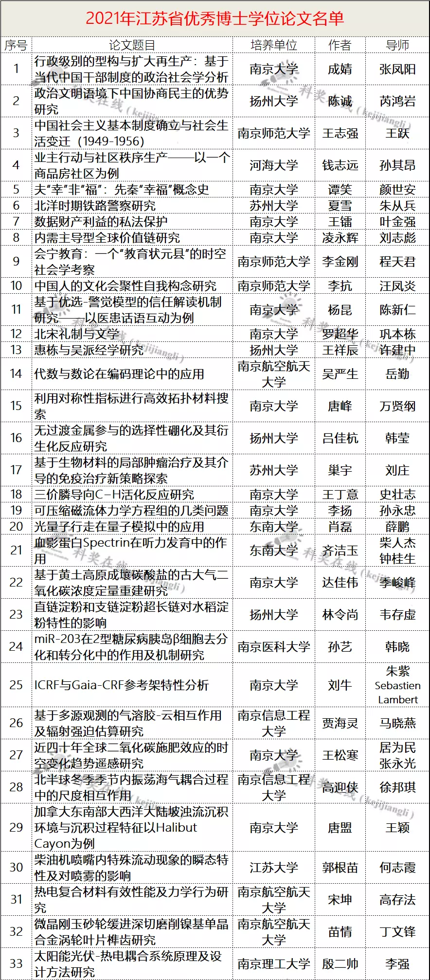 截止到2021年12月8日,2021年度各省市、学会、协会公布的优秀博士学位论文573篇、优秀硕士学位论文832篇,具体如下:
