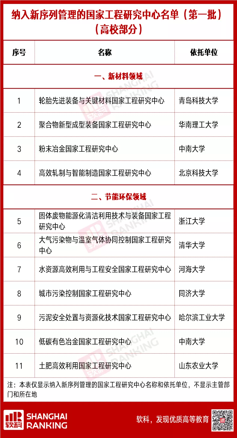 据了解,经过两批评价筛选,全国共有350多家工程研究中心(实验室),经过优化整合评价,仅有191家入选新序列管理国家工程研究中心。其中由高校牵头的国家工程研究中心共52家,占总数的27%。中南大学、北京交通大学、郑州大学、东北大学、昆明理工大学、华中农业大学、长沙理工大学、北京大学、云南农业大学、武汉理工大学、华北电力大学、中国石油大学(华东)、中南林业科技大学、西南交通大学等多所高校宣布入选。