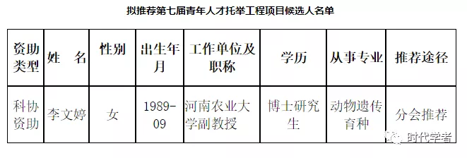第七届“青年人才托举工程”项目自筹经费入选人名单