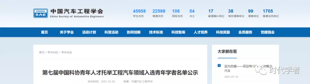 根据《中国科协办公厅关于开展第七届中国科协青年人才托举工程项目申报工作的通知》(科协办函创字〔2021〕173号)要求,中国汽车工程学会在汽车行业内开展青年人才托举工程遴选工作。
