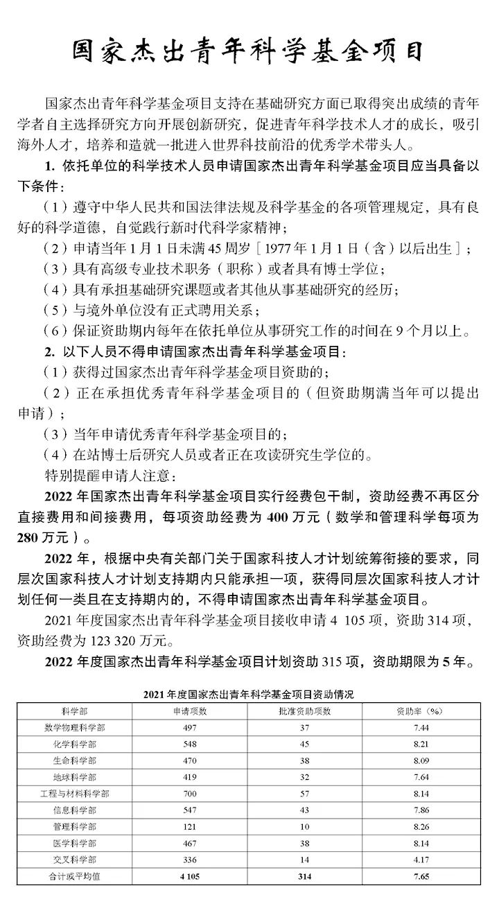 相较于2021年的项目指南,粗略看来2022年度项目指南变动不大。最重要的几项改革在指南发布前均已发出公告,比如: