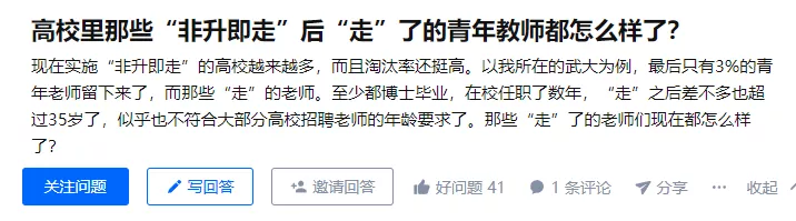 取消事业编,实行全员合同聘用制,是事业单位的改革方向,高校事业编也终将消失。而如今,绝大部分「双一流高校」都已经实施了「预聘-长聘」制度。可以预见,不远的未来,我国高校将全面进入非升即走的聘用制时代。
