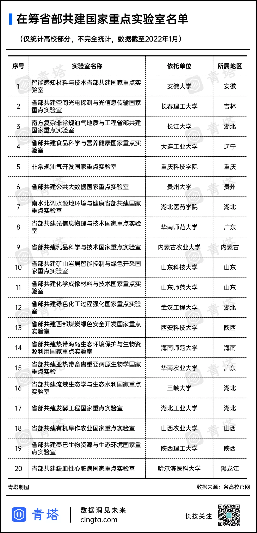 据不完全统计,虽未正式获批,但目前正在筹建的科技部省部共建国家重点实验室约20个。