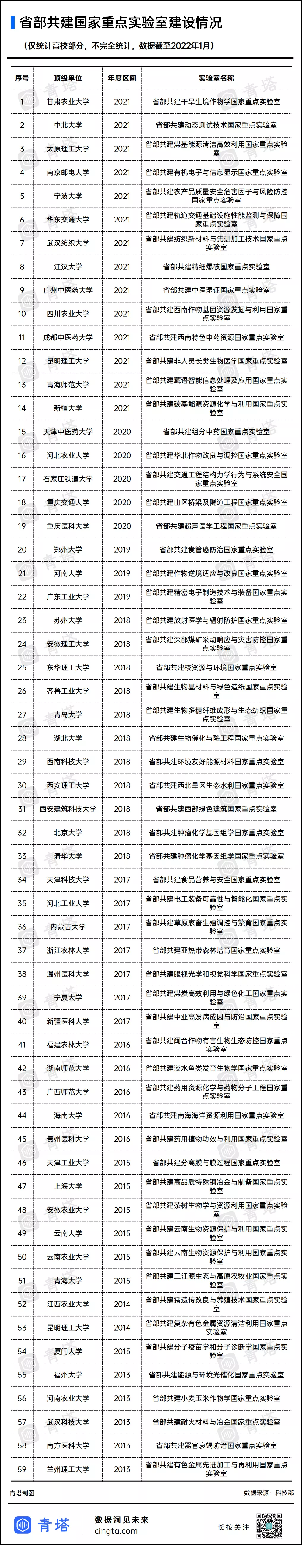 据不完全统计,截至2022年1月,获批建设的省部共建国家重点实验室数量已经有63个。其中,高校59个。若按照总量70个左右计算,省部共建国家重点实验室的大门也逐渐要关上。