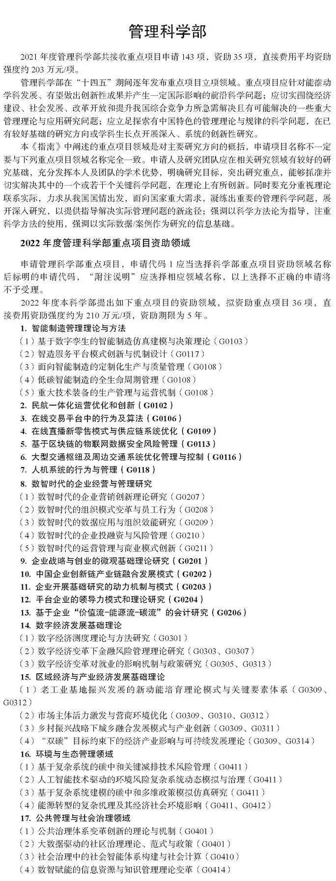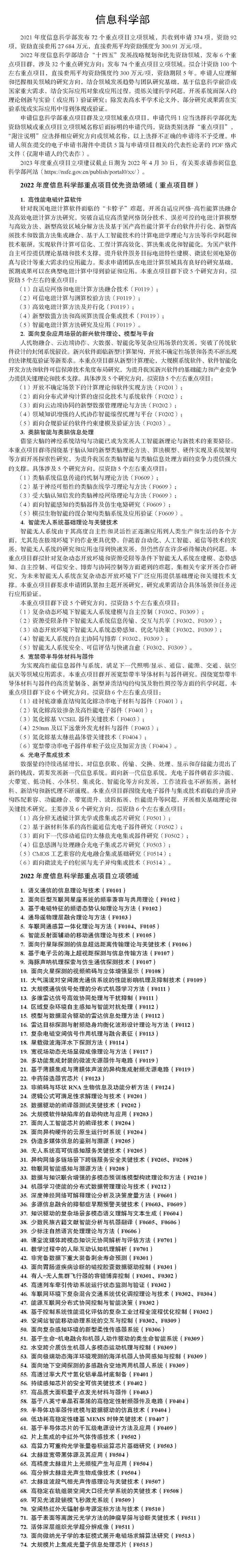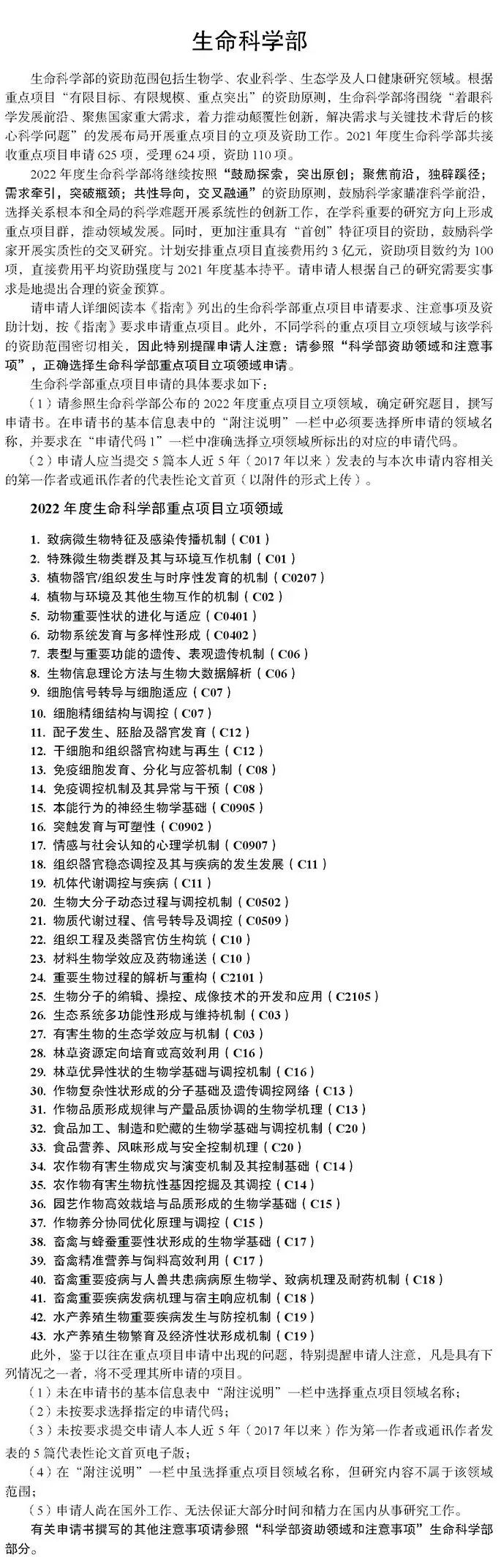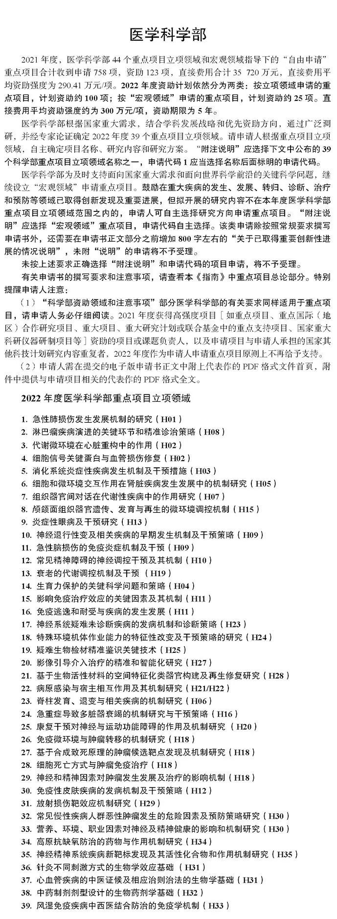 《2022年度国家自然科学基金项目指南》里面重点项目的优先资助领域: