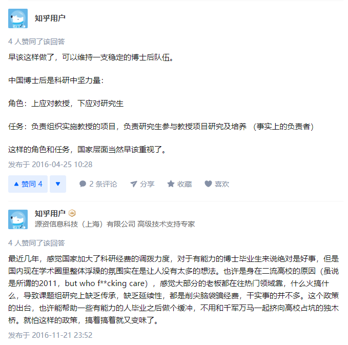 首先,国家注意到国内博士后群体是好事。这其中的推动因素之一是海外人才大量回国组建团队,对高质量博士后研究员的需求。但是博新计划并没有解决博士后群体的职业发展问题,有点像头疼医头、脚疼医脚的感觉,此类计划未能解决的问题包括:
