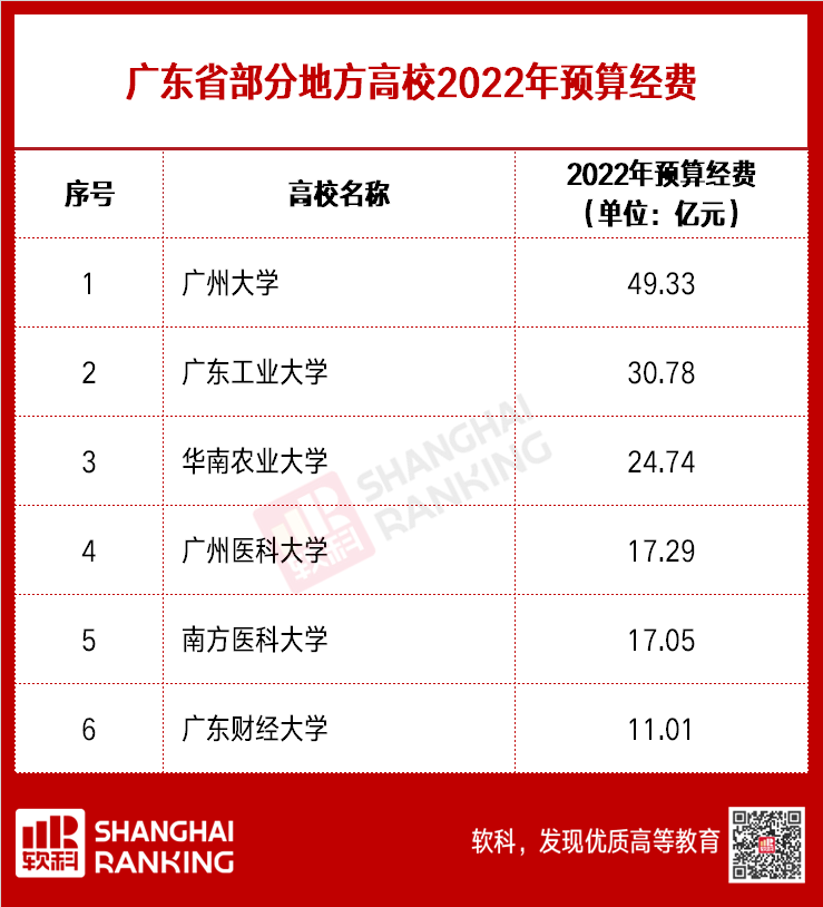 以下为各省市部分地方高校2022年预算经费: