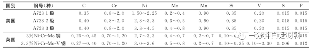 表 1 美国、英国炮钢化学成分