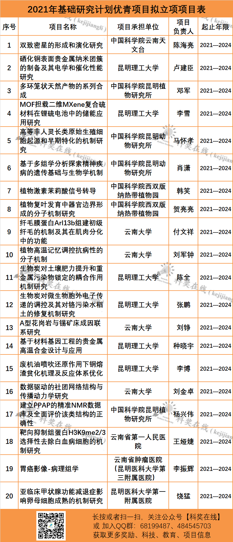 2021-2022年度全国『杰青优青』最新立项名单