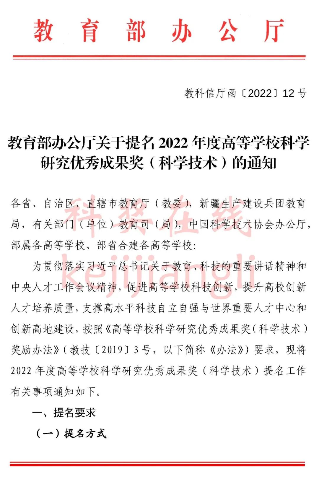四、完成人同一年度被两个以上高等学校科学研究优秀成果奖(科学技术)项目提名;(最常见)