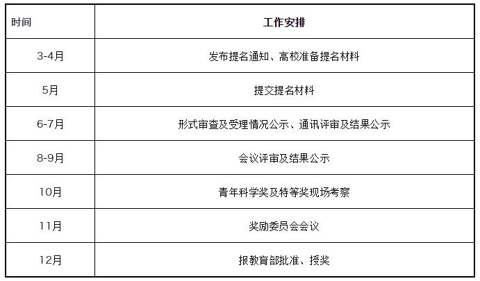 高等学校科学研究优秀成果奖(科学技术)年度工作日程