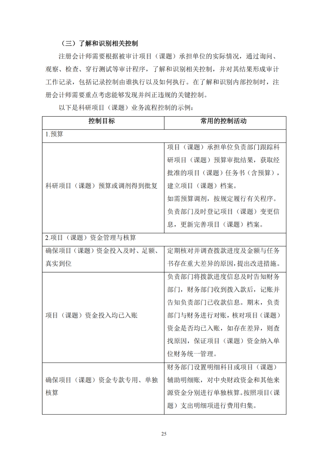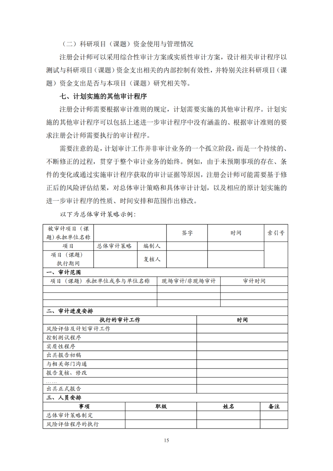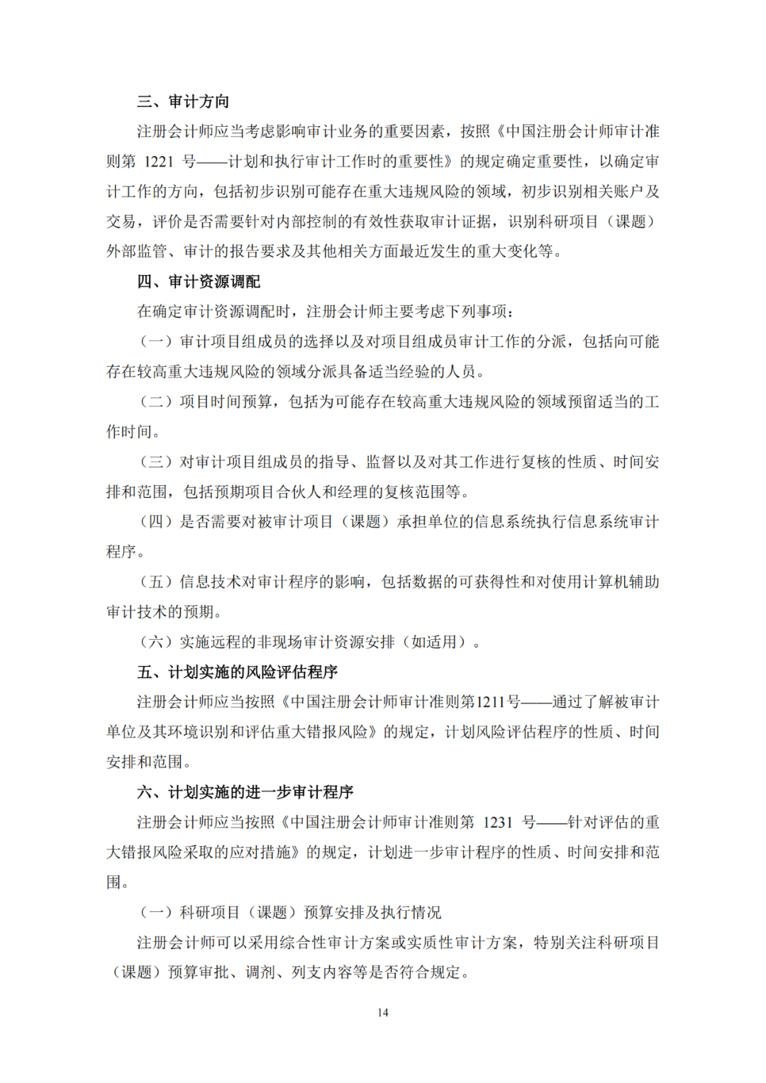 二是坚持“有效”原则,提高审计质量和效率。针对实务中存在的突出问题,提出明确、有针对性的工作要求,在减轻科研人员负担的同时,指导注册会计师更好地运用职业判断,执行恰当的审计程序,降低审计风险,提高审计质量。