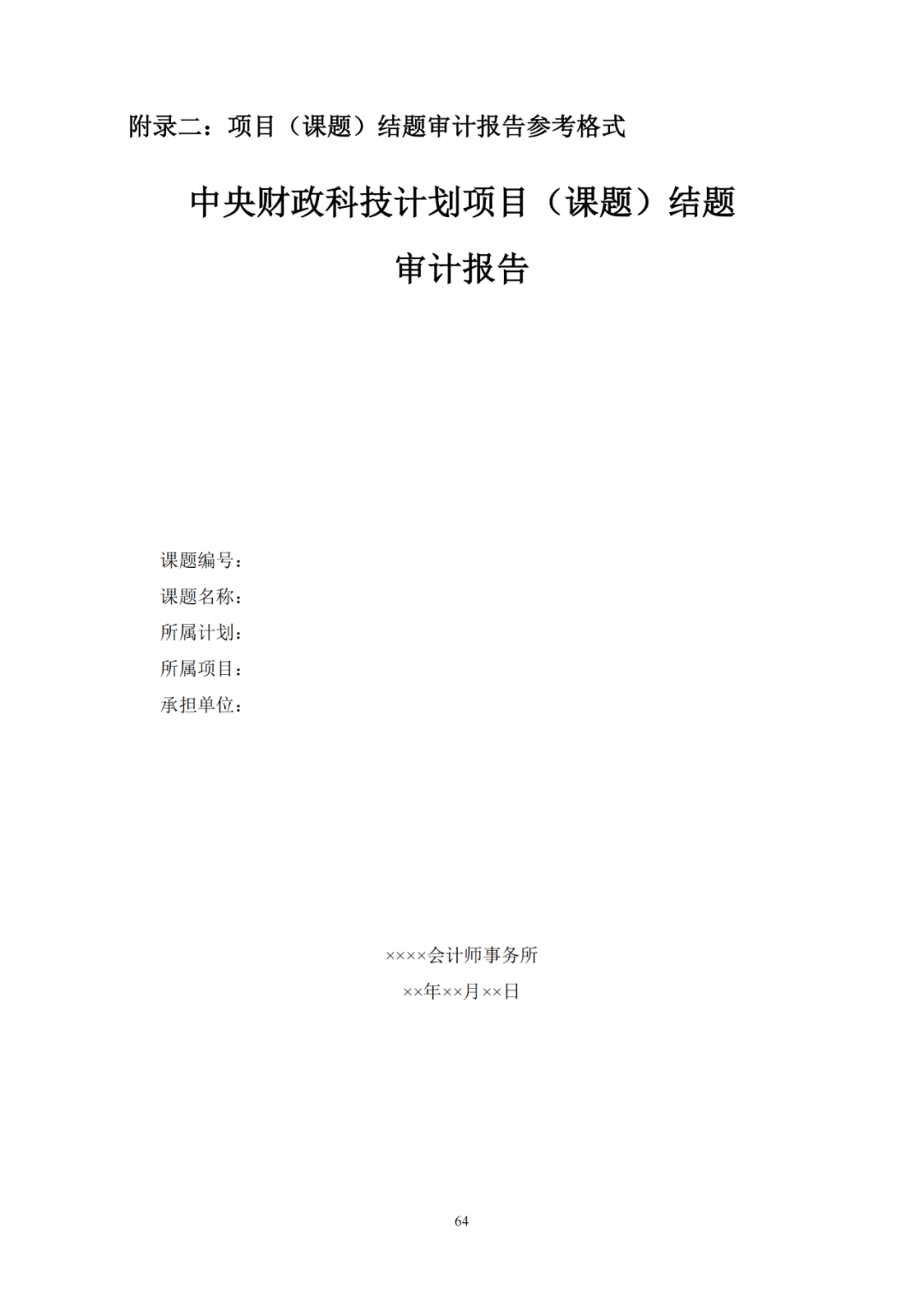 1. 中央财政科技计划项目(课题)结题审计指引(征求意见稿)
