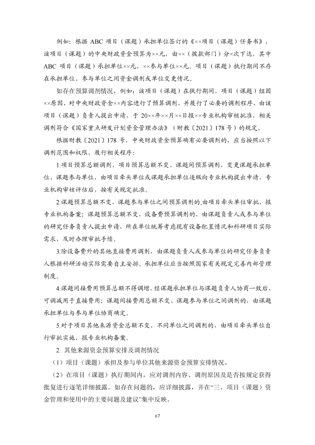 4. 根据《关于进一步完善国家重点研发计划项目综合绩效评价财务管理的通知》(国科办资〔2021〕137 号)关于“取消项目层面审计报告”的要求,征求意见稿删除了审计汇总报告的相关要求和项目结题审计汇总报告参考格式。
