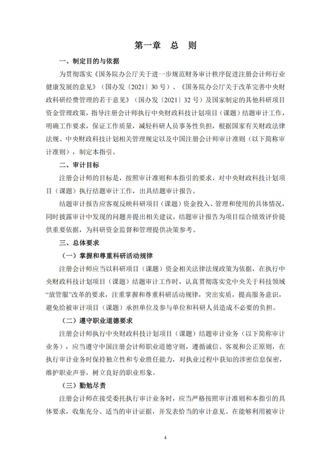 为了贯彻落实《国务院办公厅关于进一步规范财务审计秩序 促进注册会计师行业健康发展的意见》(国办发〔2021〕30 号)、《国务院办公厅关于改革完善中央财政科研经费管理的若干意见》(国办发〔2021〕32 号)文件精神,提升注册会计师行业服务国家建设的能力,进一步提高中央财政科技计划项目(课题)结题审计质量和效率,完善科研项目综合绩效评价财务管理,减轻科研人员负担,中注协对《中央财政科技计划项目(课题)结题审计指引(2018 年)》进行了修订,形成了征求意见稿。