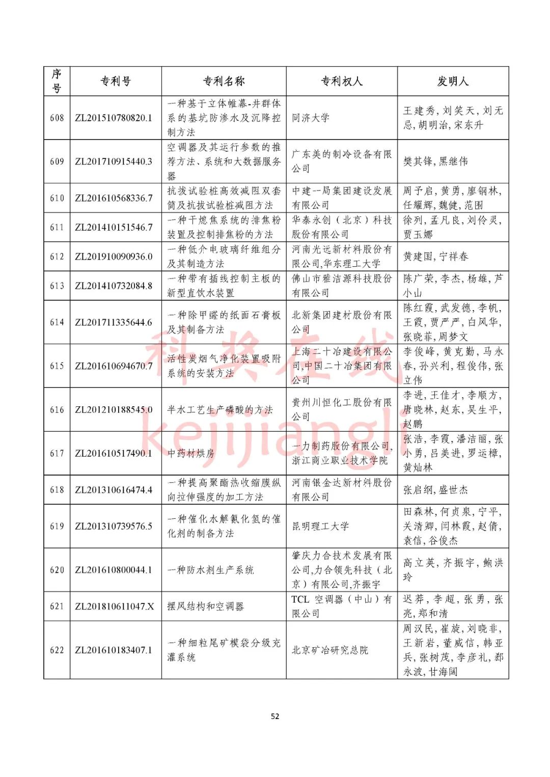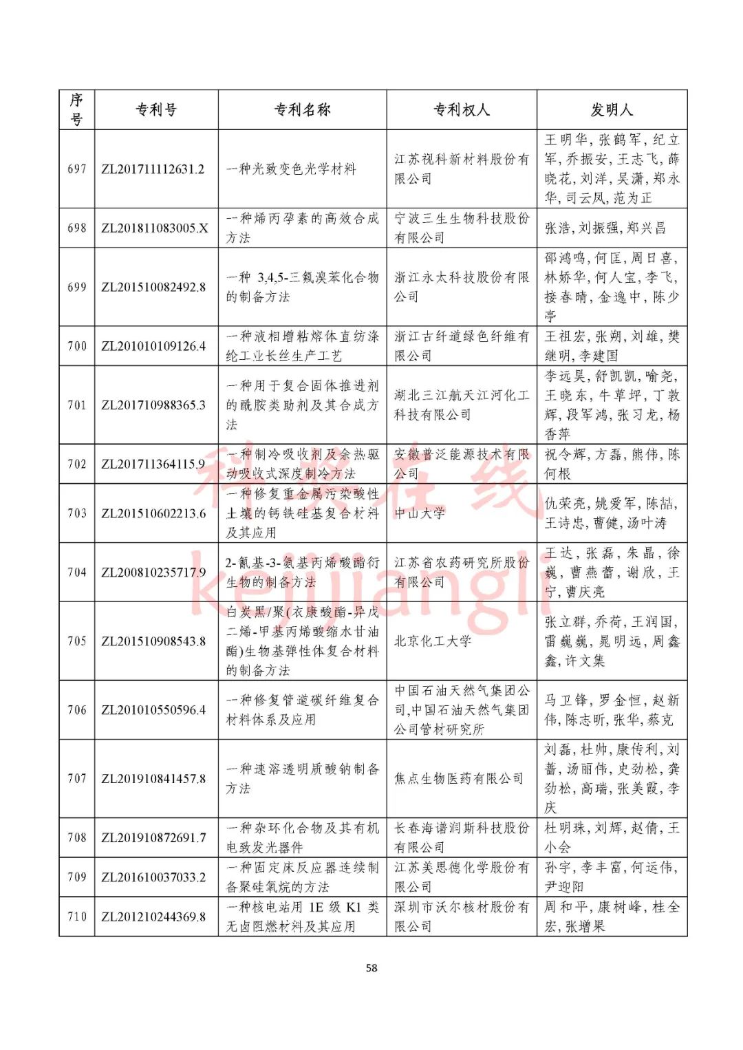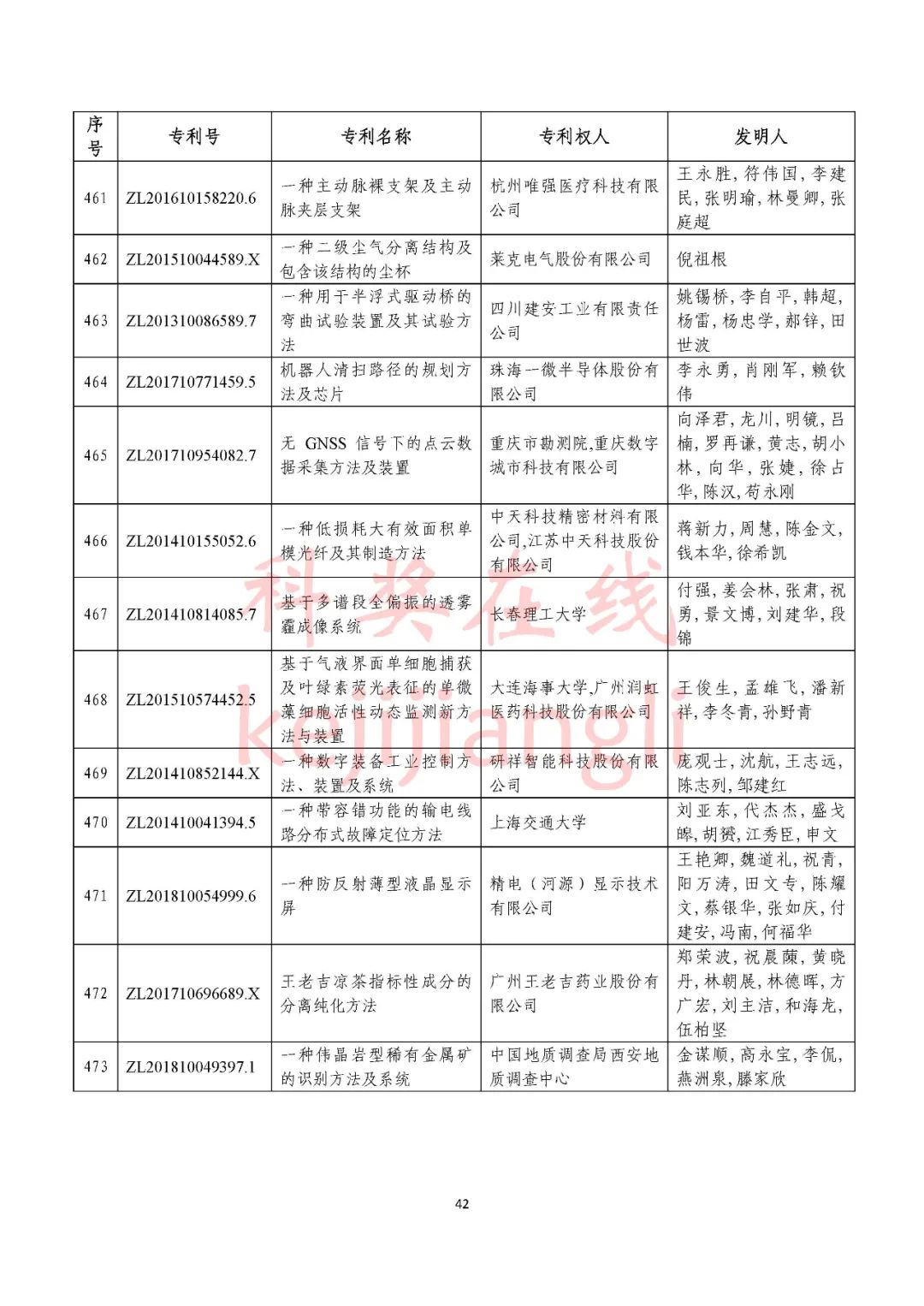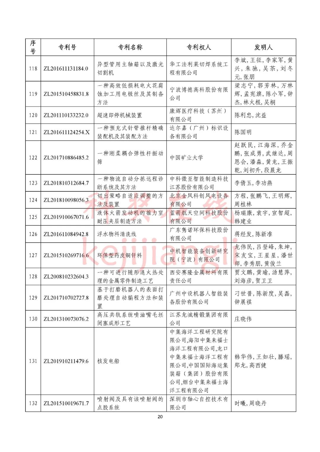 根据《中国专利奖评奖办法》《国家知识产权局关于评选第二十三届中国专利奖的通知》规定,第二十三届中国专利奖共评选出:中国专利金奖预获奖项目30项,中国外观设计金奖预获奖项目10项,中国专利银奖预获奖项目60项,中国外观设计银奖预获奖项目15项,中国专利优秀奖预获奖项目792项,中国外观设计优秀奖预获奖项目52项,现予以公示,公示期为2022年4月15日至4月21日。