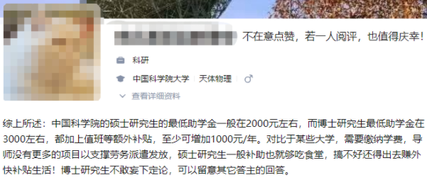 中科院在读博士生指出,作为一名博士生,每年的补助包含:国家助学金+导师助学劳务派遣费+所在科研院所的助学金+所在院所的值班任务+鼓励发表论文奖励,这样平均在每个月就在3K左右。