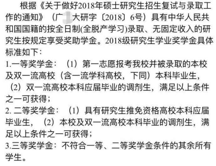 在一片讨论声中,华南理工大学被低调地“夸出了声”,该校研究生坦然地表示“我们学校研究生,所有人都是12000奖学金+6000国家助学金,不分推免考研,也不分等级”。